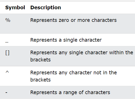 WHERE condition;WILDCARDS
